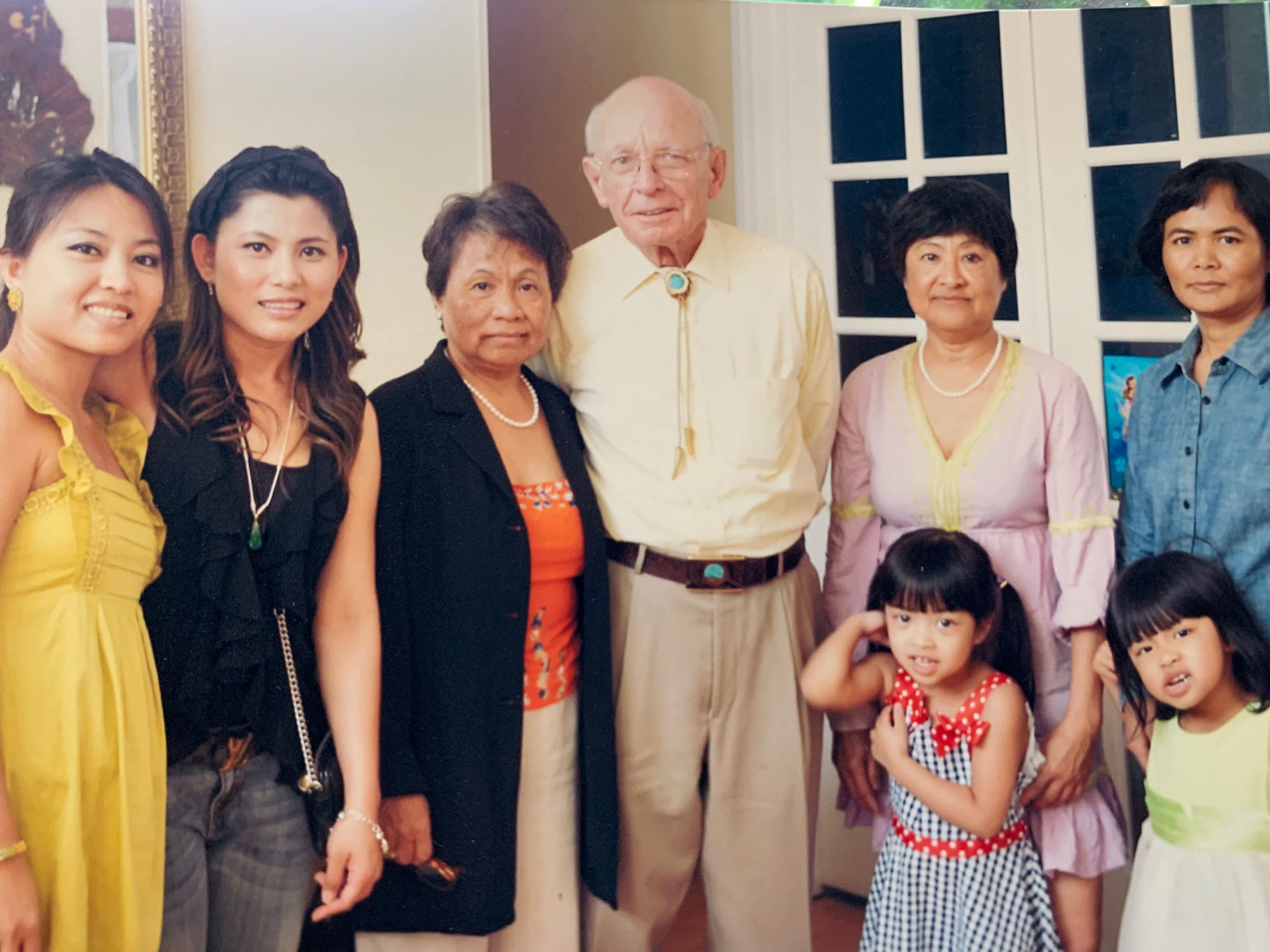 Not one to give up on romance, Tom later married Kimhuor Tieng, mother to Vitou Tieng, born in 1981 in Phnom Penh, Cambodia, and two other children whom she lost to starvation while working in the killing fields of Pol Pot and the Khmer Rouge. Kimhuor came to America in 1994 and worked for many years as a chef. When videotaping and photographing Kimhuor cooking, Tom and she hit it off. Their union in 2015 enabled Tom to immerse himself in an entirely new culture surrounded by another large and loving family. In addition to becoming stepfather to Kimhuor’s son Vitou and his wife Yun Kil Khounphithack, Tom became grandfather to their three young children (Kanchnatevi Weiran Tieng, 14, Vitou Chen Tieng, 12, and Amrita Tieng, 6) who reside with their parents in Las Vegas, NV.